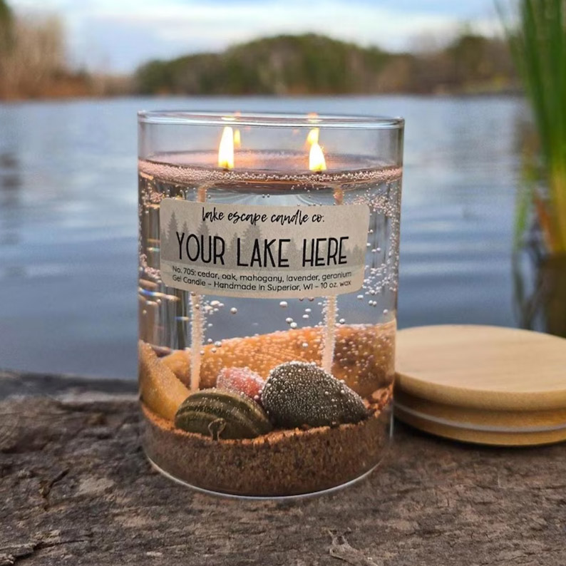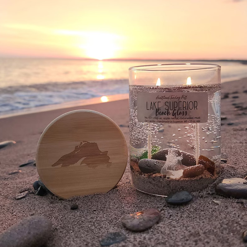 Best known as the creator of the signature "Lake Superior" gel candles, featuring lake-inspired designs and stunning clarity, Lake Escape Candle Co. also offers a cozy line of soy candles inspired by the great outdoors.